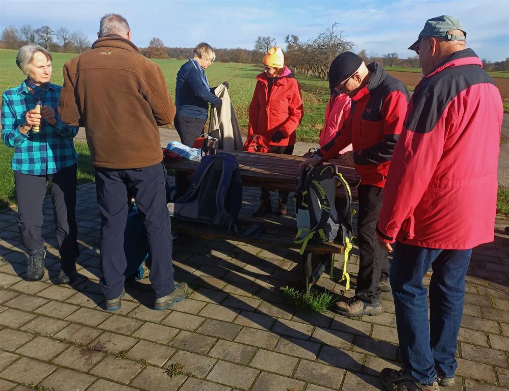 Mit dem Auto ging es nach Leonbronn, von da aus wanderten wir nach Mühlbach. Mittagspause wurde in Mühlbach eingelegt (Im Ochsen), dann ging es über Ochsenburg wieder nach Leonbronn. Einen Teil der Wanderroute ging es den Eppinger Linien entlang.