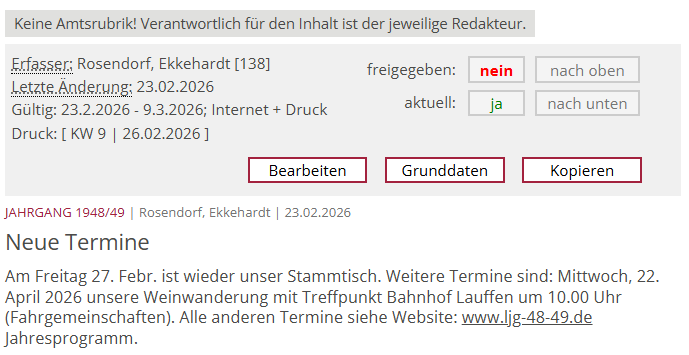 ansehen kann. Sind kommen auch in gedruckter Form (Amtsbote)